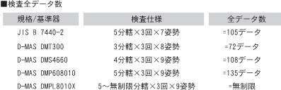 ※検査法の相違点よって生じる検査結果での相違は、測定機の精度合否判定に 著しく影響をあたえるものではありません。(複数の検証を通して得られた結論として)